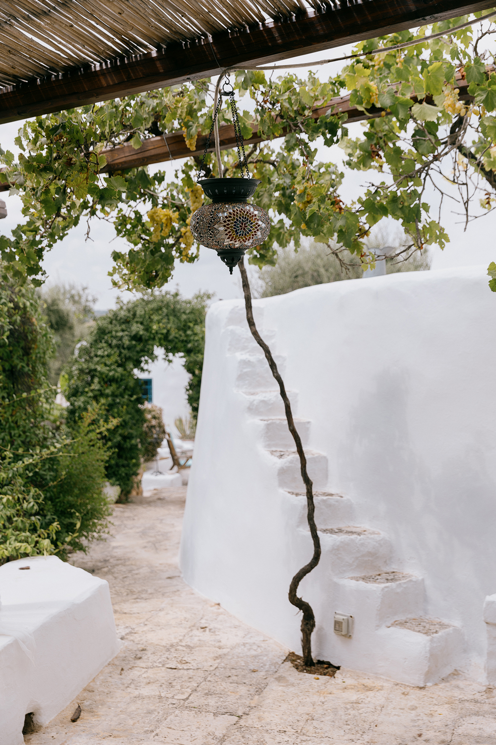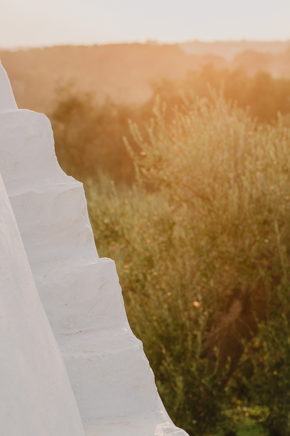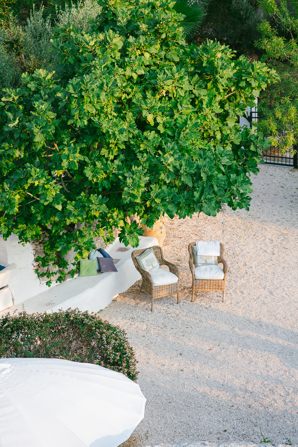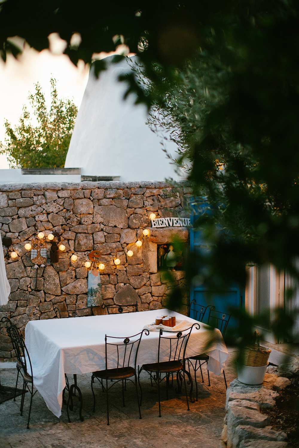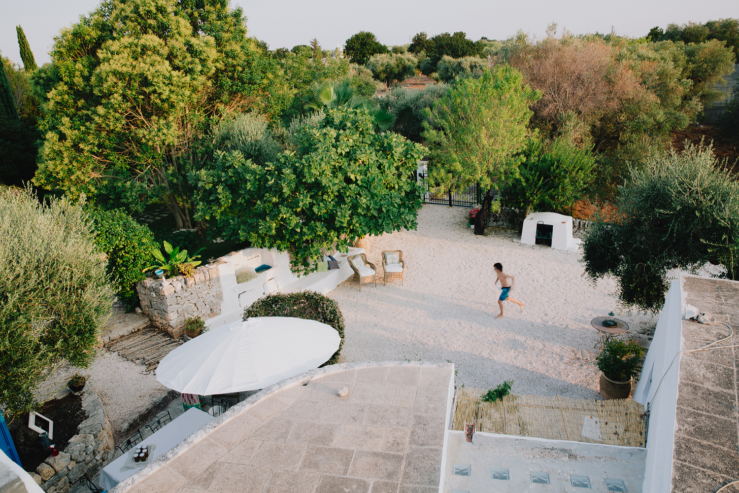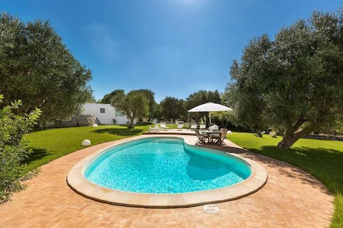A far da cornice a Il sogno di Nora vi sono le verdi e rigogliose chiome degli ulivi della Valle d`Itria e un prato inglese ampio e curato.